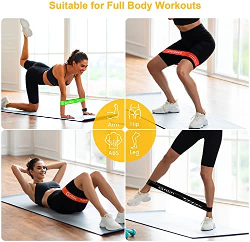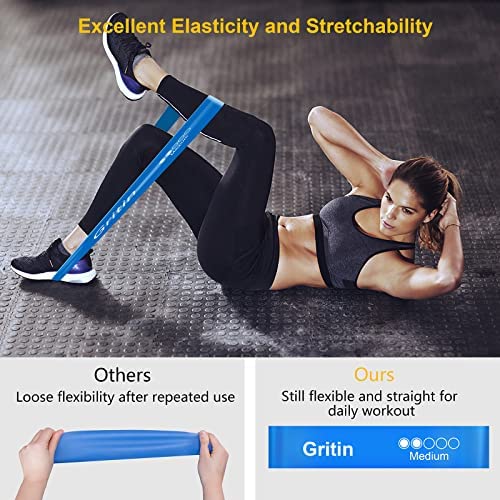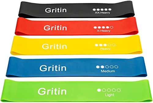 Gritin Resistance Exercise Loop Bands Set with Instruction Guide and Carry Bag – Set of 5 Fitness Elastic Bands for Working Out, Exercise,Gym,Training,Yoga