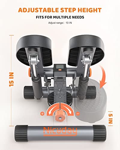【Adjustable Step Height】There is a stride adjustment knob at the bottom of the Niceday stepper. You can adjust the height of the steps according to your needs. A low stride makes it easier to step to extend your duration, and a high stride will burn more calories.