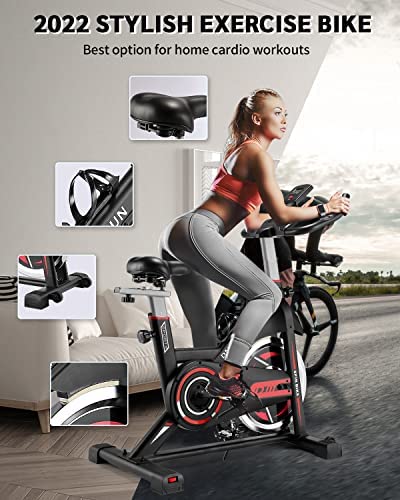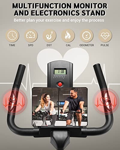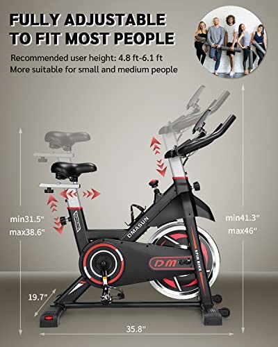 DMASUN Exercise Bike, Indoor Cycling Bike Stationary, Cycle Bike with Comfortable Seat Cushion, Digital Display with Pulse, iPad Holder