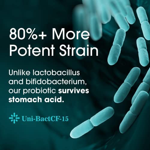 FULL BENEFITS WITH UNI-BACT CF15: Most probiotics use Lactobacillus and Bifidobacterium, which are solid choices—until they reach the stomach, where their survival rate is just 5-15%. Our bacillus coagulans is dormant in harsh conditions, so it isn’t killed by stomach acid. It RETAINS FULL POTENCY until it reaches the intestines.