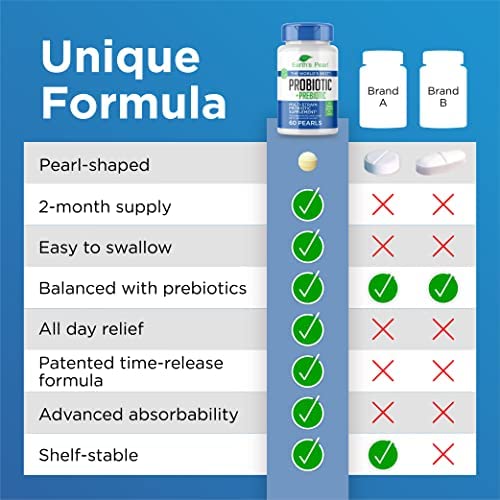 2-MONTH SUPPLY: The probiotic and prebiotic capsules feature an innovative pearl shape which makes them particularly easy to swallow. The 60-day supply of probiotic nutritional supplements is free from GMOs, gluten, and lactose and made in the USA