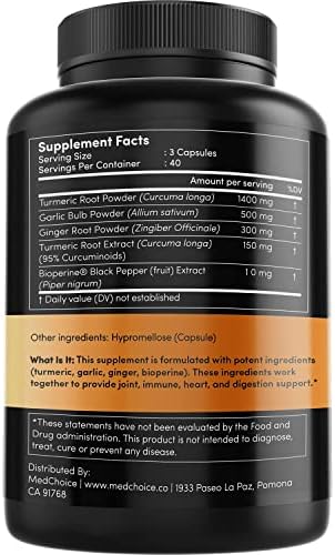 Easy Intake: Our turmeric curcumin supplement is professionally formulated in the USA with global ingredients in a tiny & convenient capsule form. Take two capsules daily, with a meal and water, or as instructed by a healthcare professional.