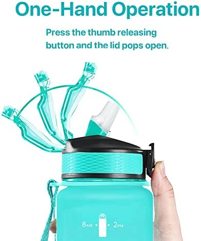 Distinct and Portable: Leak-proof locking lid with one-handed push-button, prevent dust and leakage. The water bottle is equipped with a carry strap, allowing you to easily carry it anywhere. Perfect choice for fitness, gym, running, hiking, cycling, camping, and any ohter indoor outdoor sports.