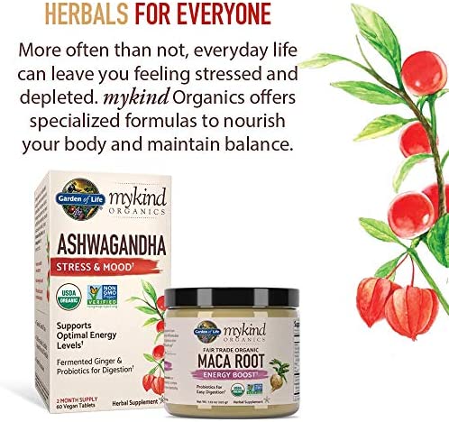 Ashwagandha is a clinically studied adaptogenic herb that nourishes your adrenal glands, helps support a healthy stress response helping your body to manage stress, optimize energy levels and fight fatigue.† Inspired by centuries of Ayurveda, we’ve added Organic Fermented Ginger Root to our Ashwagandha for its synergistic effect. mykind Organics Ashwagandha Stress and Mood promotes a healthy stress response†, boosts energy and mood†, and includes added probiotics to enhance digestion†—plus the product is Certified USDA Organic, Non-GMO Project Verified Certified Gluten Free by NSF, and Certified Vegan & Kosher. †These statements have not been evaluated by the Food and Drug Administration. This product is not intended to diagnose, treat, cure or prevent any disease.
