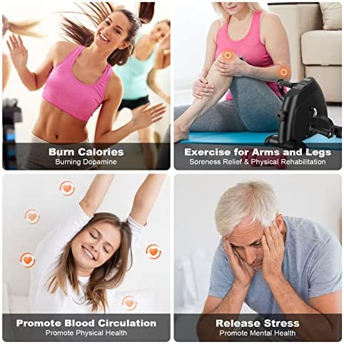 【Home Pedal Exerciser】: Combined with Arm & Leg exercise by adjustable multi-level resistance , this mini bike trainer can target at providing different exercising level to train your muscle group, upper & lower body exercises with best effect to keep fit.