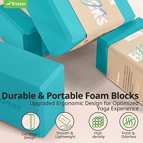 Trideer Yoga Blocks, Yoga Blocks 2 Pack, Premium EVA Foam Blocks with Free Guide, Supportive, Lightweight & Odor Resistant, Yoga Essentials for Yogi & Yogini, Yoga Accessories 9"x6"x3"